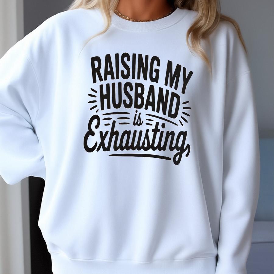 Raising My Husband Is Exhausting Shirt, Funny Sarcastic Wife Tee, Anniversary Gift For Wife, Birthday Gift, Funny Couple Shirt Sweatshirt