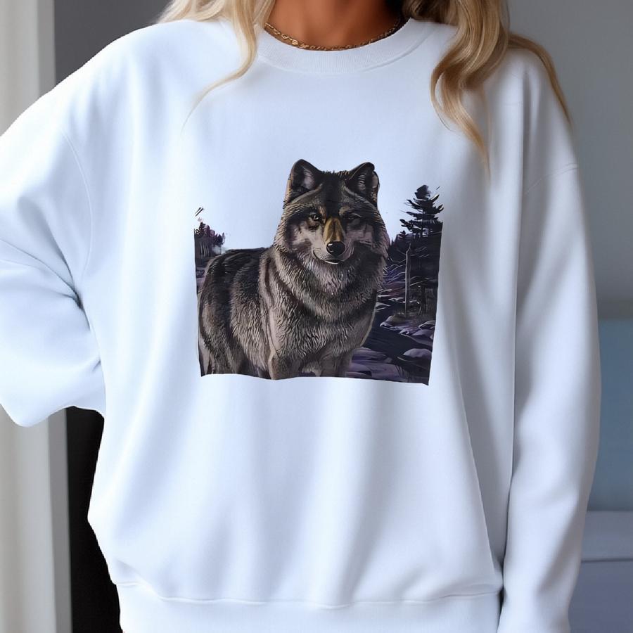 Vintage 90s Wolf Sweatshirt Habitat Pullover Sweater Wildlife Wolf Crewneck Sweatshirt Wildlife Wolf Print Graphic White Color Large Size Sweatshirt