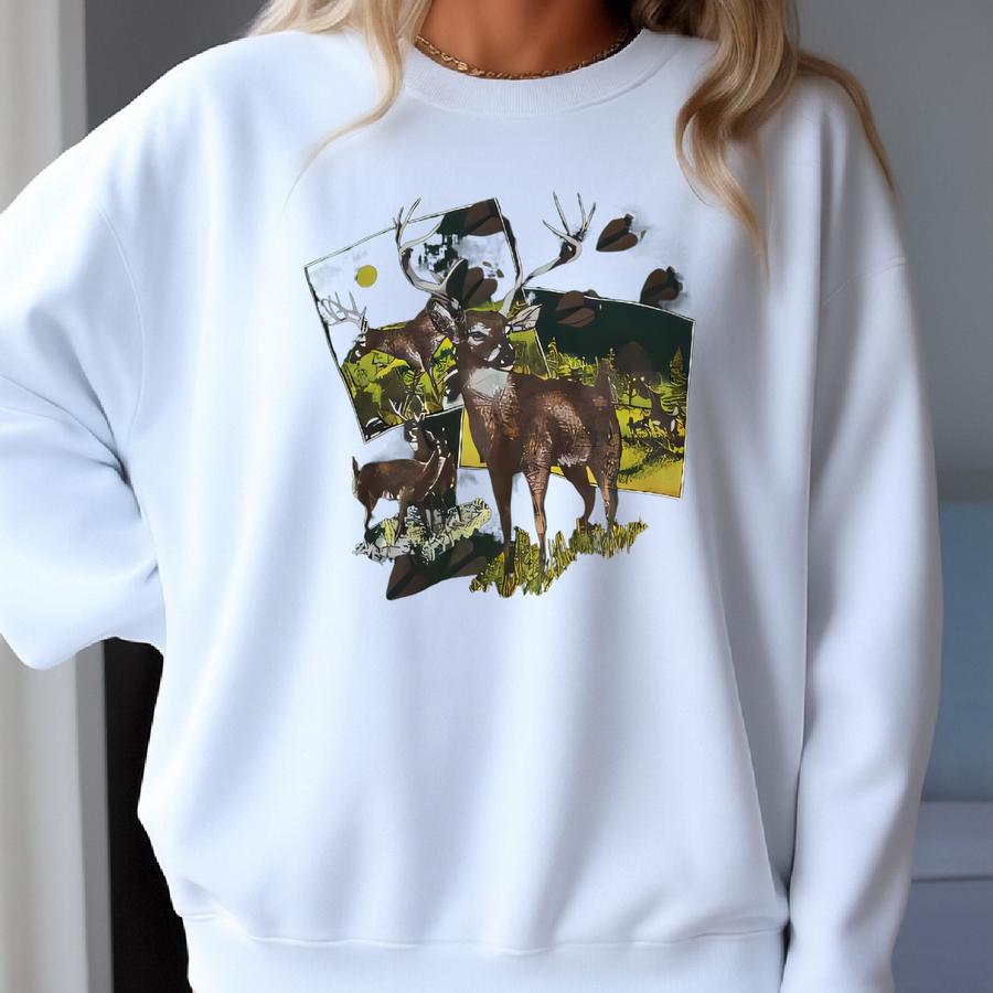 Vintage 90s White-tailed Deer Wildlife Sweatshirt Whitetail Deer Animal Graphics Crewneck Deer Animal Habitat Green Sweater Size Xl Sweatshirt
