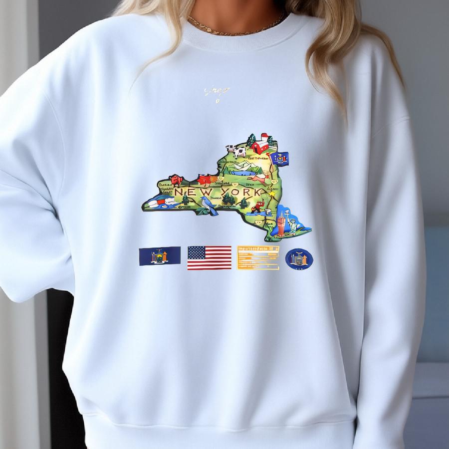 New York State Map - Unisex Sweatshirt, Art Print, Sweatshirt, Hoodie, Shirt, T Shirt, T-shirt, Tee, Gift, Vintage Shirt Sweatshirt