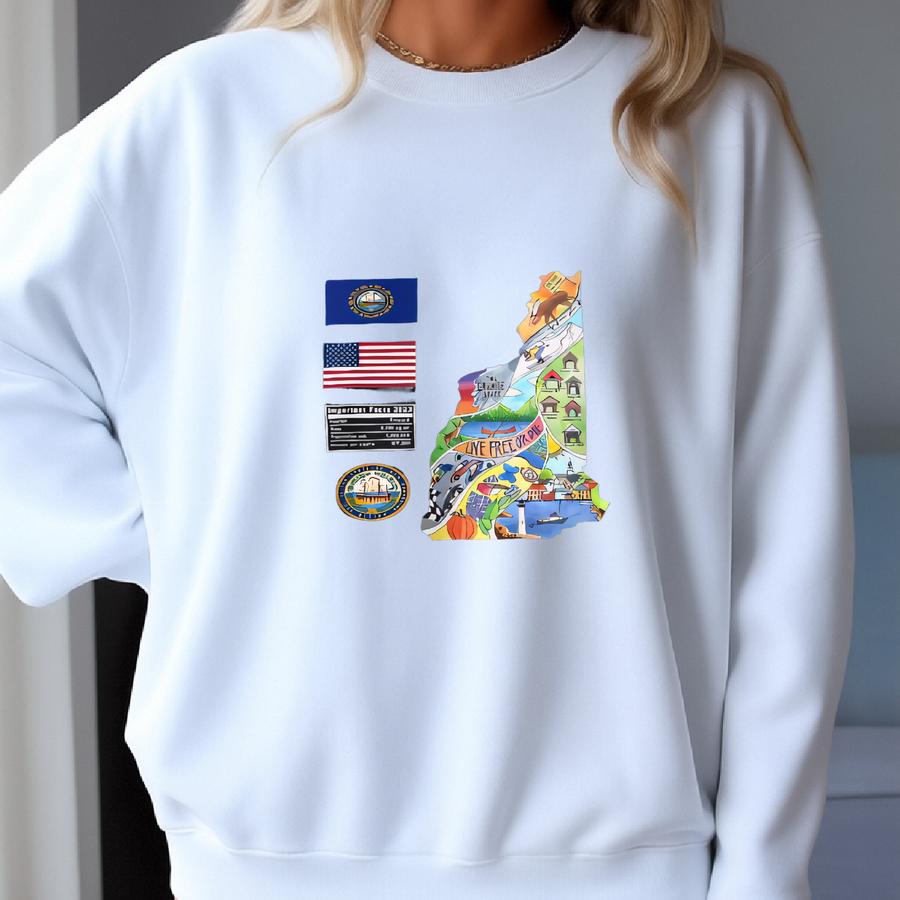 New Hampshire State Map - Unisex Sweatshirt, Art Print, Sweatshirt, Hoodie, Shirt, T Shirt, T-shirt, Tee, Gift, Vintage Shirt Sweatshirt