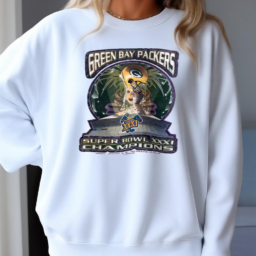 Vintage 90s Green Bay Crewneck Sweatshirt - - Print Logo - White Color - Men’s Xl Sweatshirt