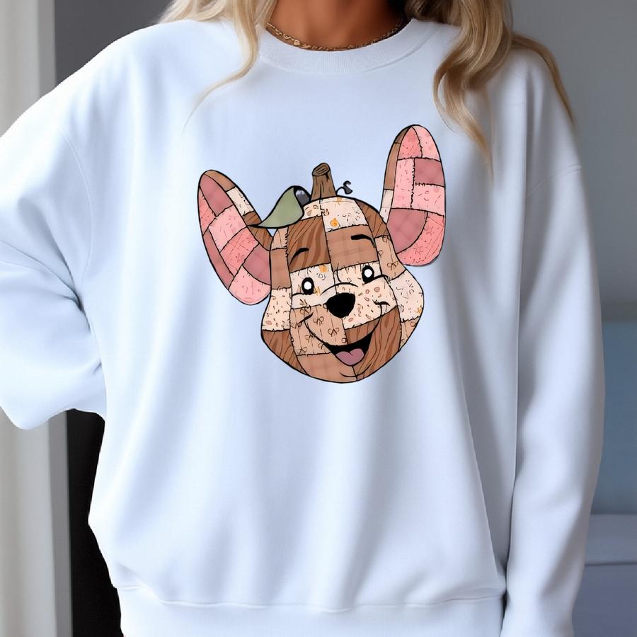 Patchwork Style Cartoon Shirt, Retro Cute Pooh Bear Eeyore Piglet Roo Tigger Thanksgiving Fall T-shirt,tsf175 Sweatshirt