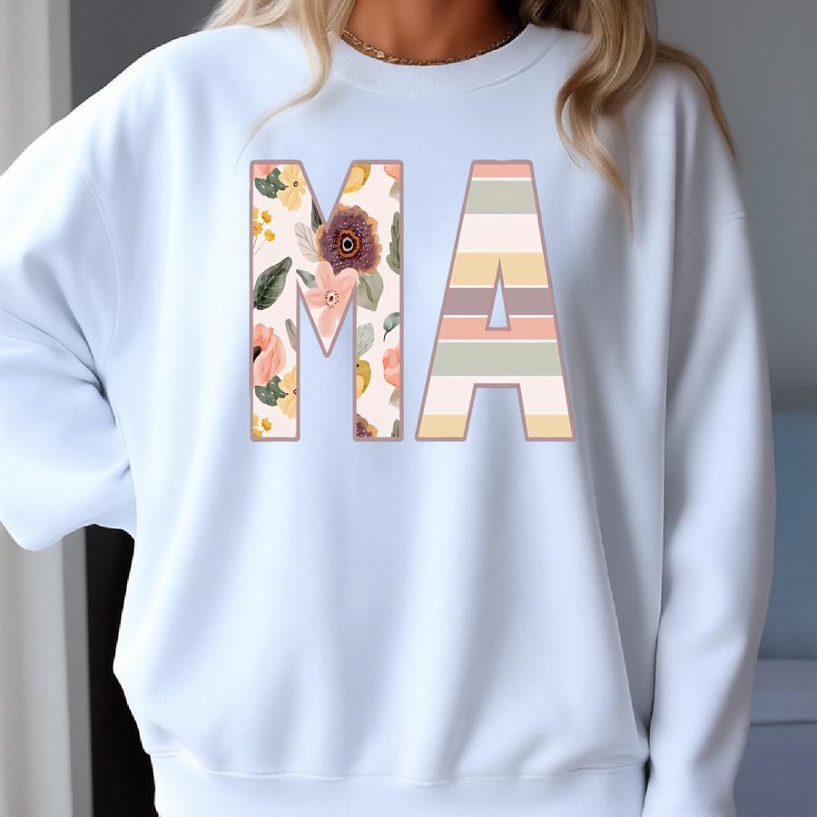 Floral Ma Sweatshirt, Medical Assistant, T-shirt, Stripes, Black, Cute, Pastel, Gift, Retro, Ladies, Womens, Cma, Nursing, Medicine, Flowers Sweatshirt