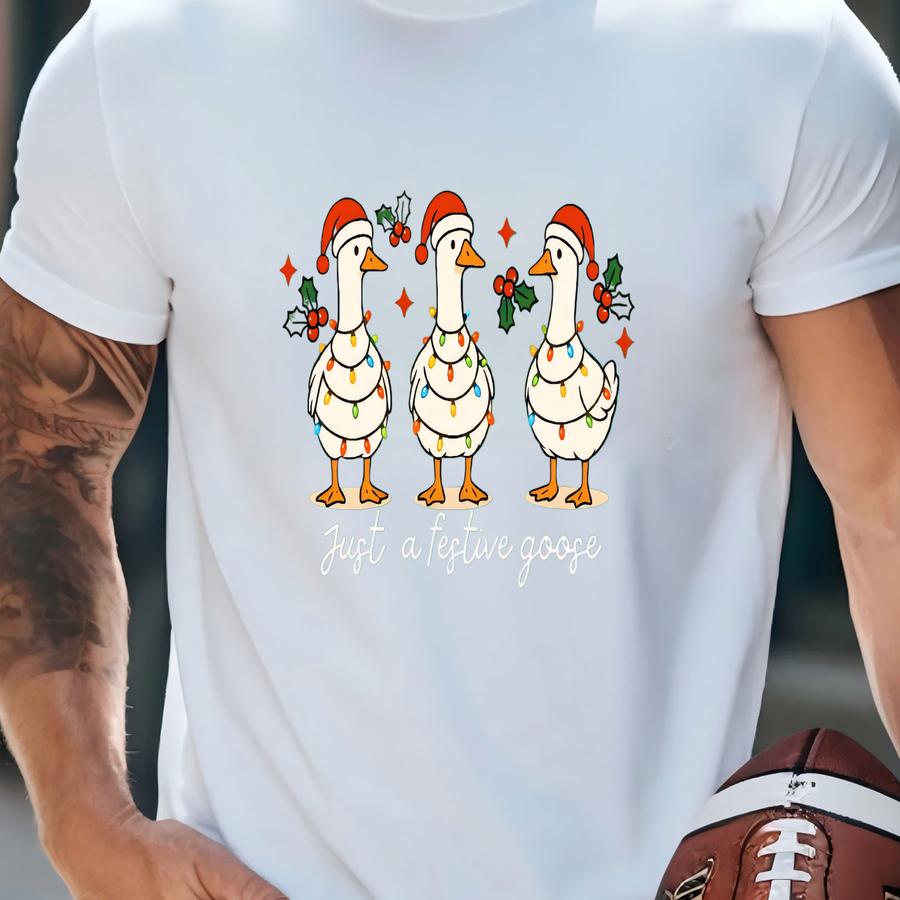 Just A Festive Goose Sweater, Kids Holiday Shirt, Cute Santa Hat Goose Sweater, Farm Animal Shirt, Christmas Gift, Xmas Boy Gift, Winter Tee T-shirt