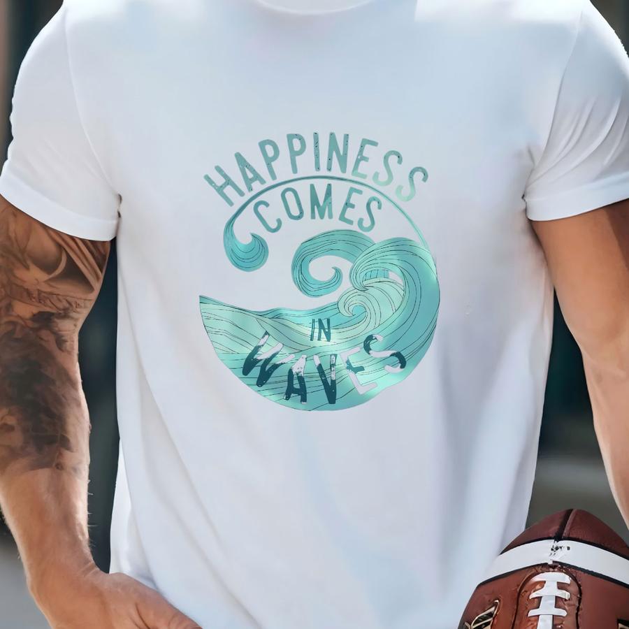 Happiness Comes In Waves Surfer Affirmation Beach Vacation Al Hoodie T-shirt