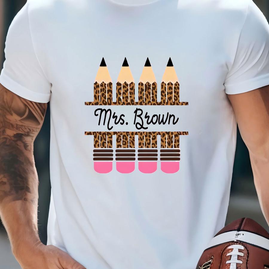 Personalized Teacher Hoodie: Leopard Pencil, Custom Name Gift T-shirt