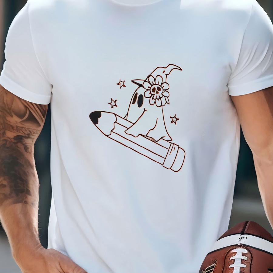Halloween Teacher Shirt, Cute Ghost Shirt, Writer Halloween Tee, Halloween Student Shirt, Spooky Teacher Tee, Minimal Halloween Shirt T-shirt
