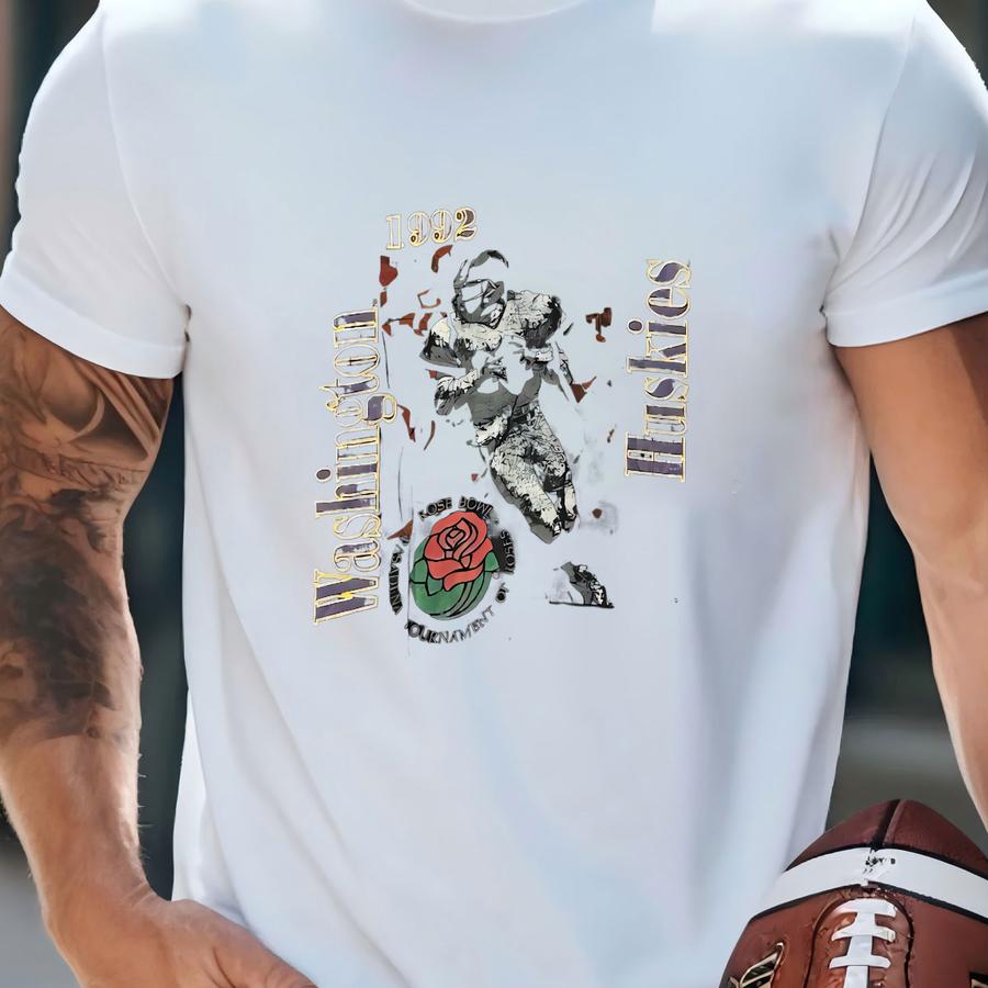Men's Vintage 90's 1992 Washington Huskies Football Rose Bowl Black T Shirt Sz L T-shirt