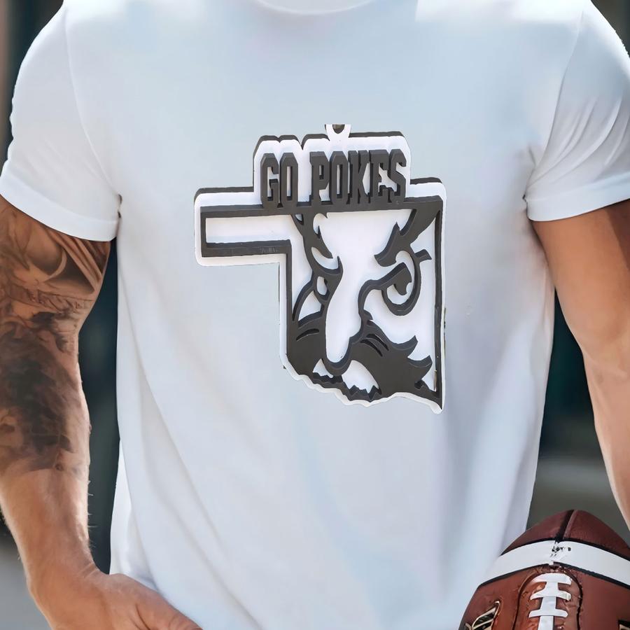 Oklahoma State Cowboys, Pistol Pete, Laser Engraved Car Charm, Graduation Gift,ornament,rearview Mirror Hanging. T-shirt