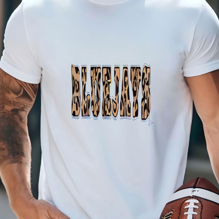 Leopard Print Bluejays On Blue Tshirt T-shirt