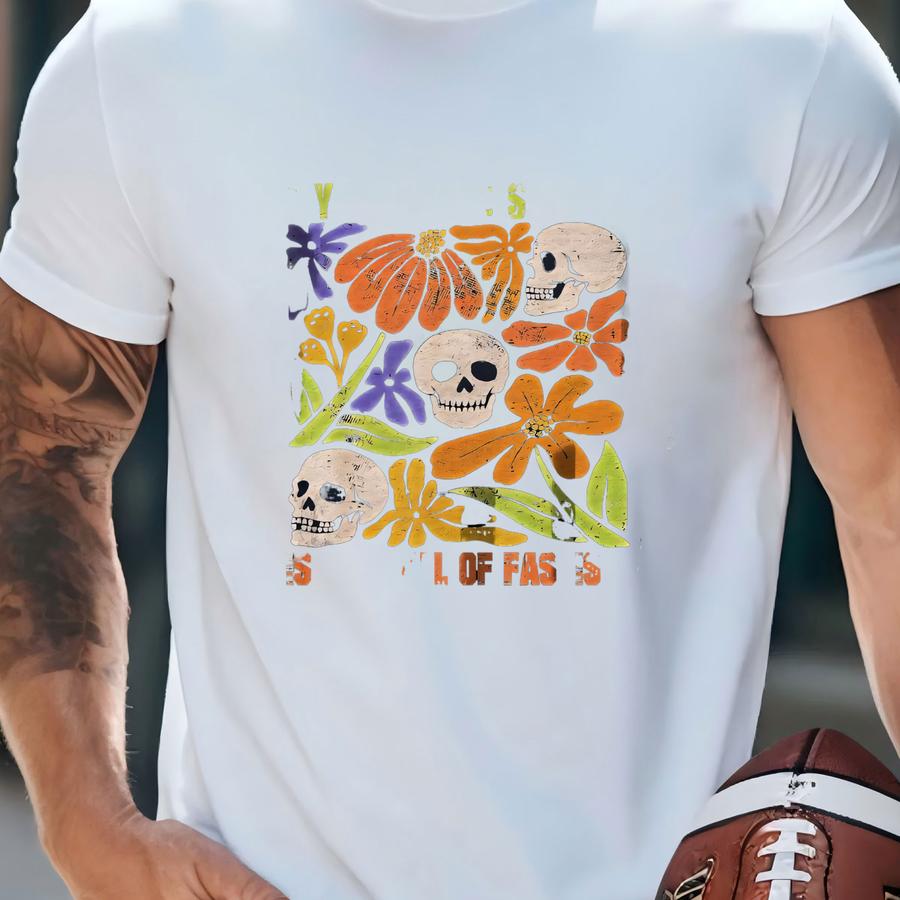 Fall Of Fascism Hoodie: Floral Skulls, Anti-fascist Halloween, Unisex Gildan 5000 T-shirt