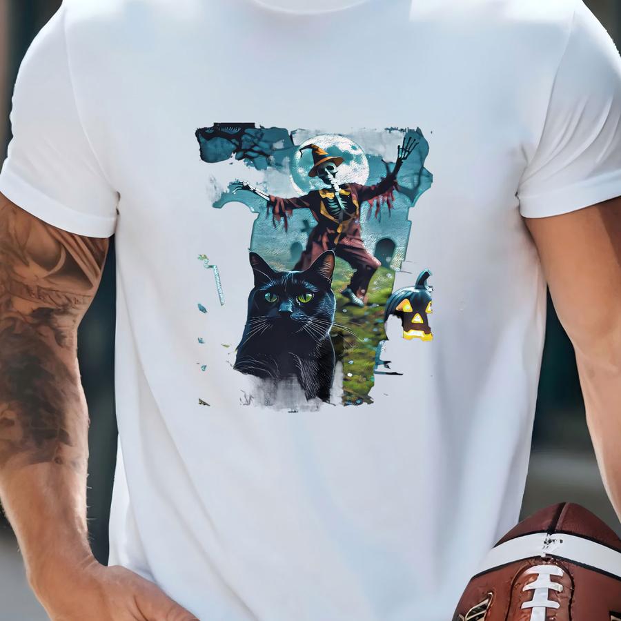 Funny Cat Selfie With Skeleton Scary Halloween Meme Hoodie T-shirt
