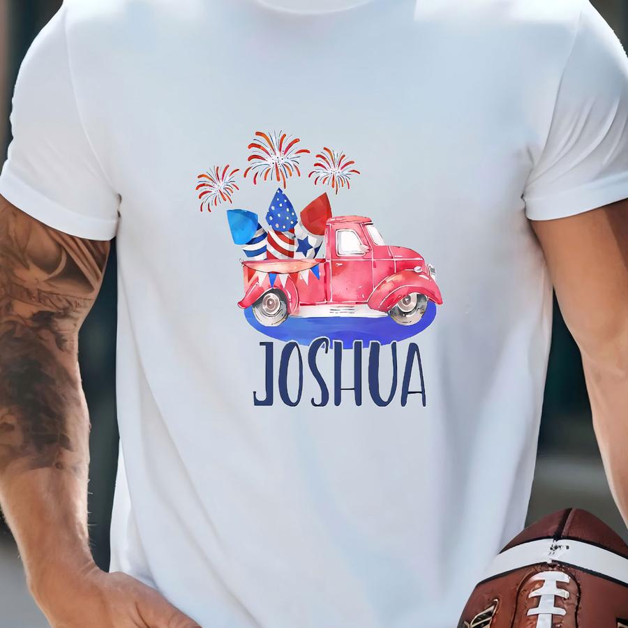 Personalized Fourth Of July Kids Shirt - Cute Patriotic Truck Toddler Shirt T-shirt