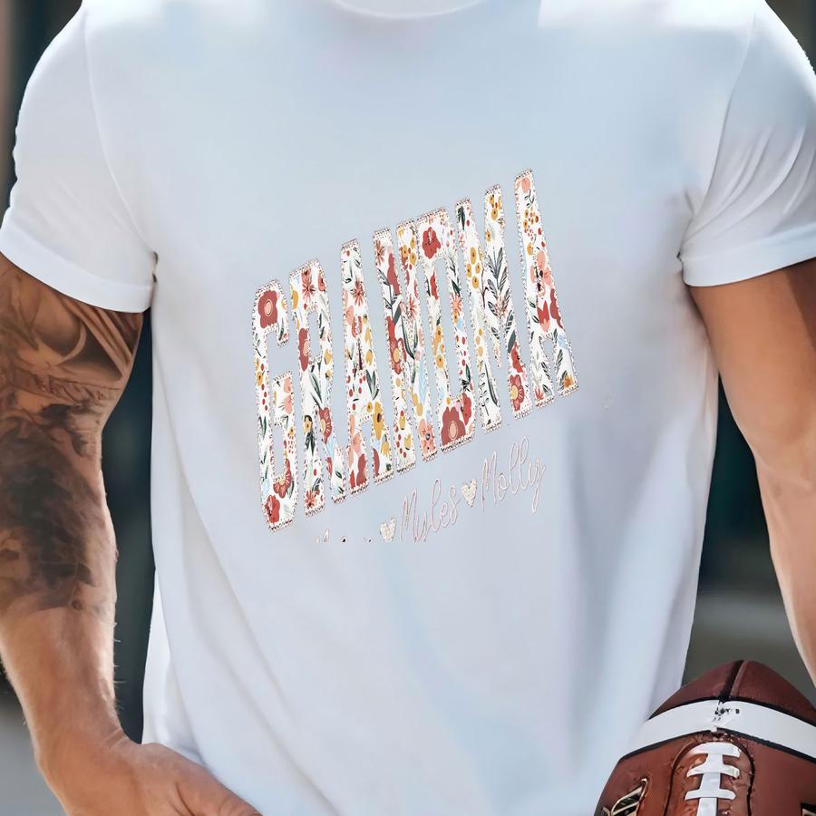 Grandma Sweatshirt, Custom Floral Pullover Crewneck, Cozy Gift For Grandma, Mother’s Day Sweatshirt, Pregnancy Reveal Outfit T-shirt