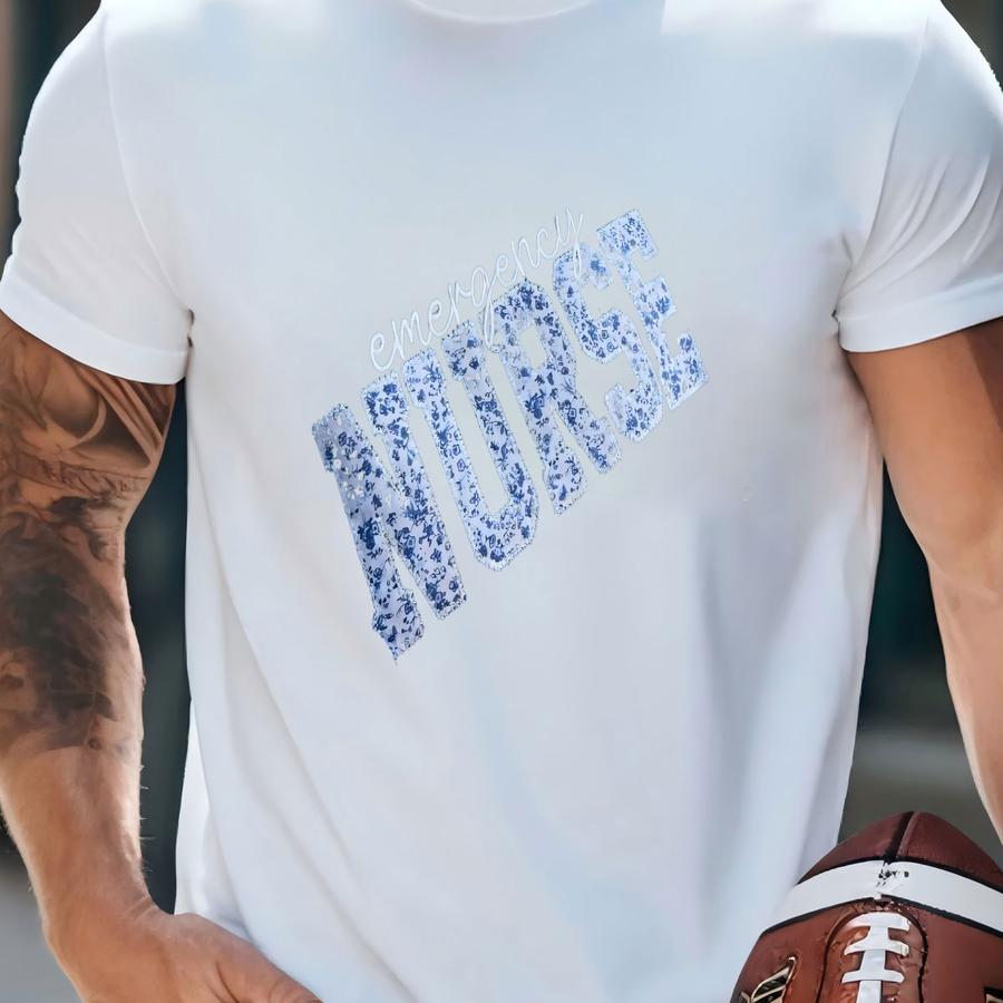 Emergency Nurse Sweatshirt, Nurse Crewneck, Toile Print Rn Sweatshirt, Blue Floral Nurse Gift, Personalized Nurse Sweatshirt T-shirt