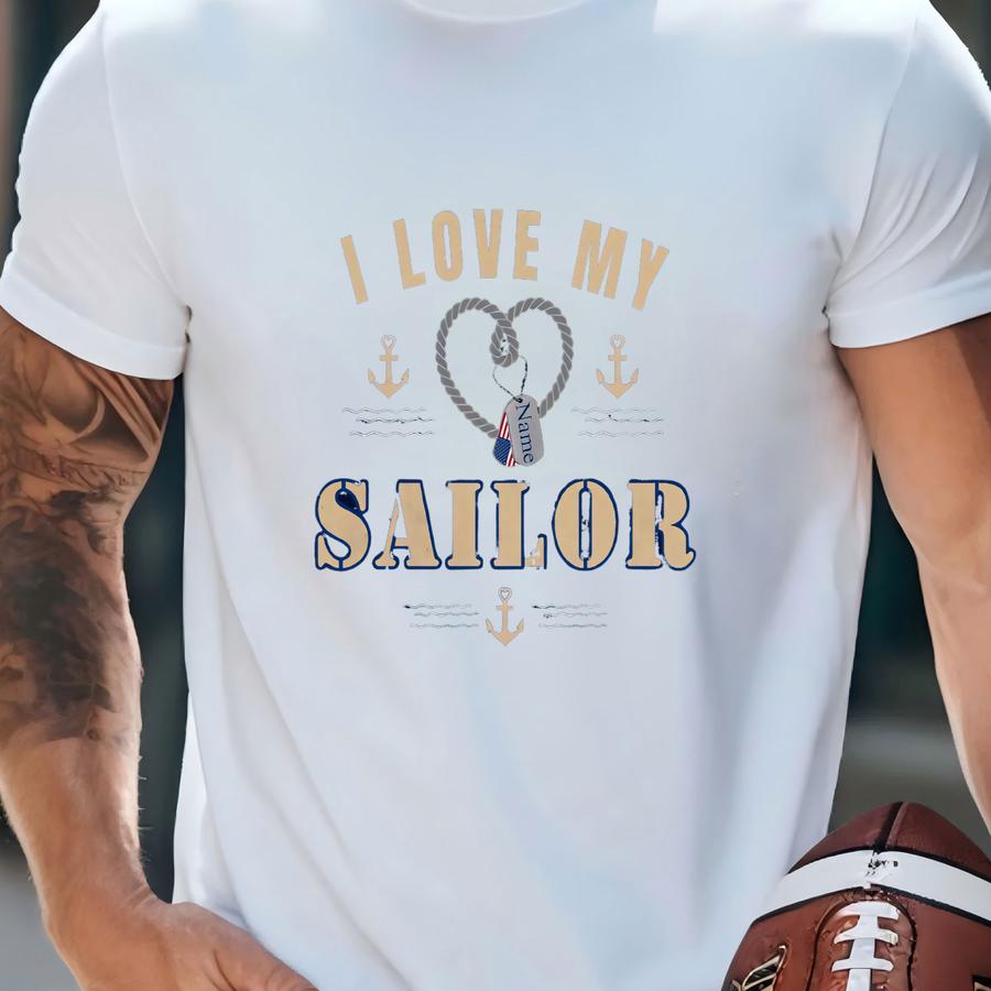 Personalized I Love My Sailor Sweatshirt: Custom Dog Tag Military Gift T-shirt