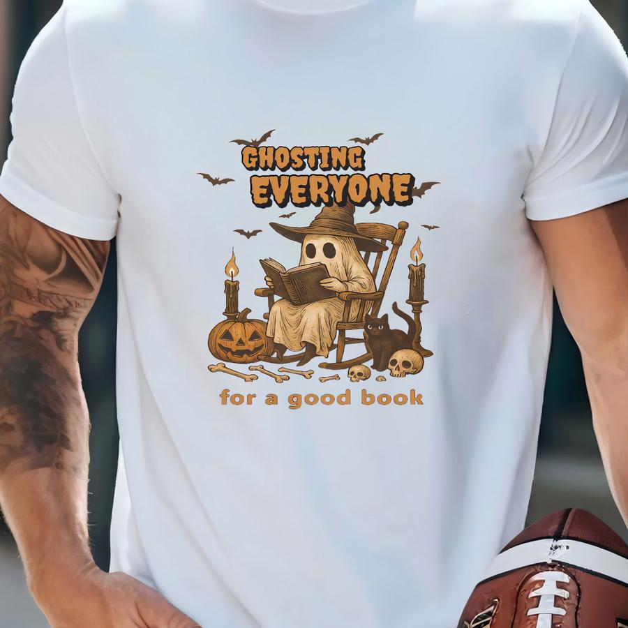 Ghost Reading Shirt, Halloween Reading Top,bookish Shirt For Women, Cute Fall Tee, Book Lover Apparel T-shirt