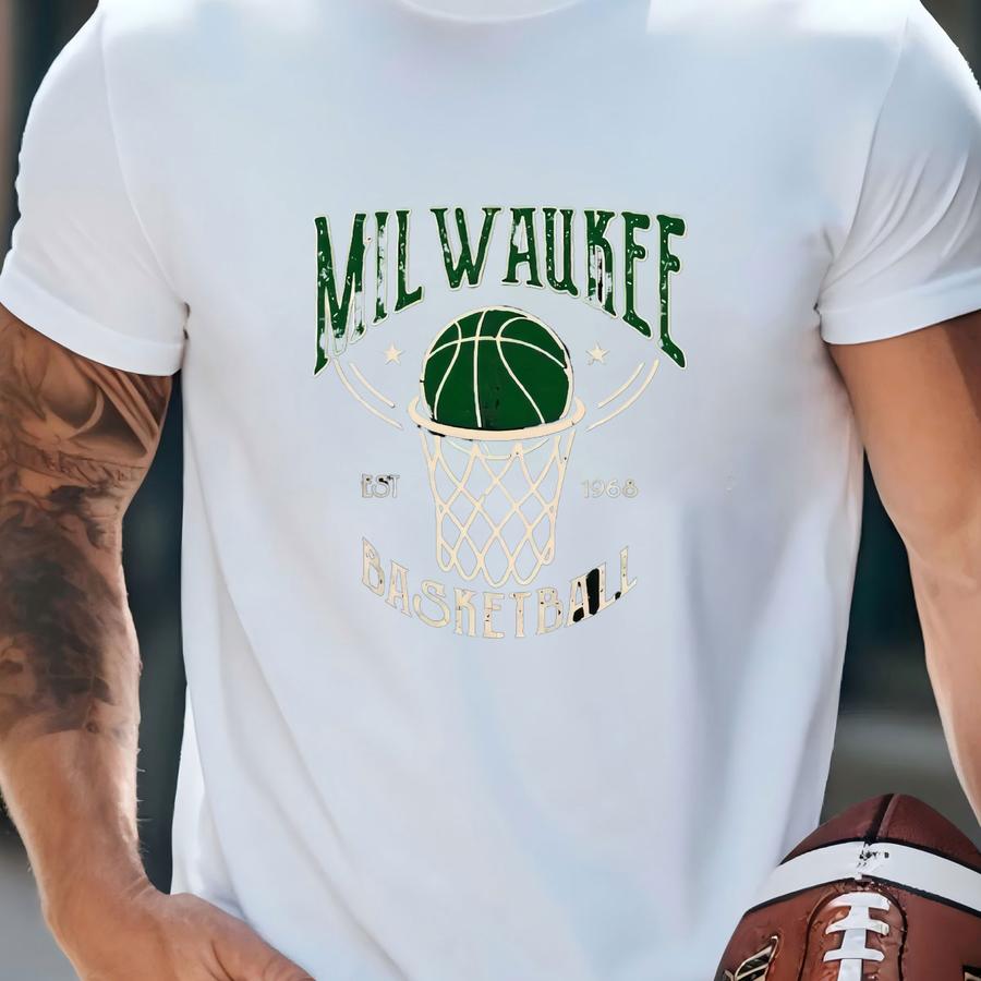 Milwaukee Basketball Est 1968 Vintage 90s Forest Green Sweatshirt, Milwaukee Basketball Team Gameday Hoodie, Basketball Retro Tshirt T-shirt