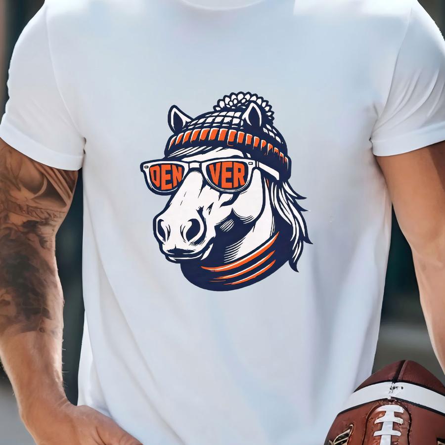 Denver Football Unisex Apparel, Mens Womens Hoodies/crewneck Sweatshirts/hoodies, Gift For Sports Fan, Game Day Outfit, Mascot Glasses T-shirt