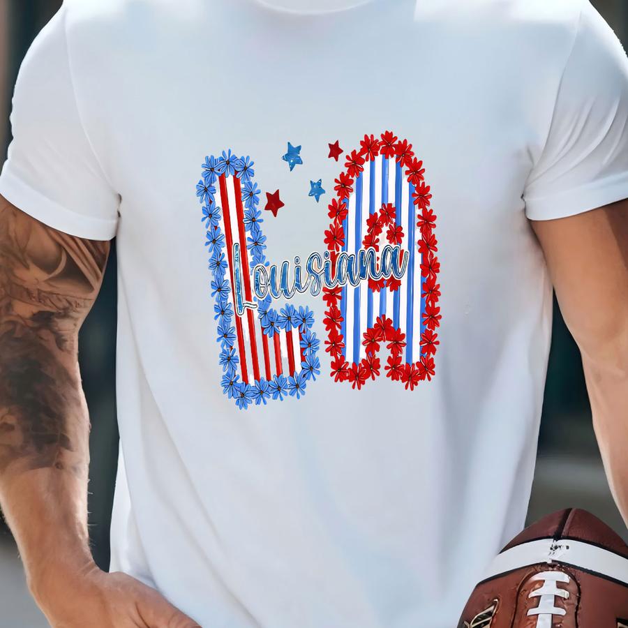 Louisiana State Floral Red White Blue Patriotic La Sweatshirt, Floral Louisiana Shirt, Red White Blue La, Usa Floral 4th Of July -jul026 T-shirt