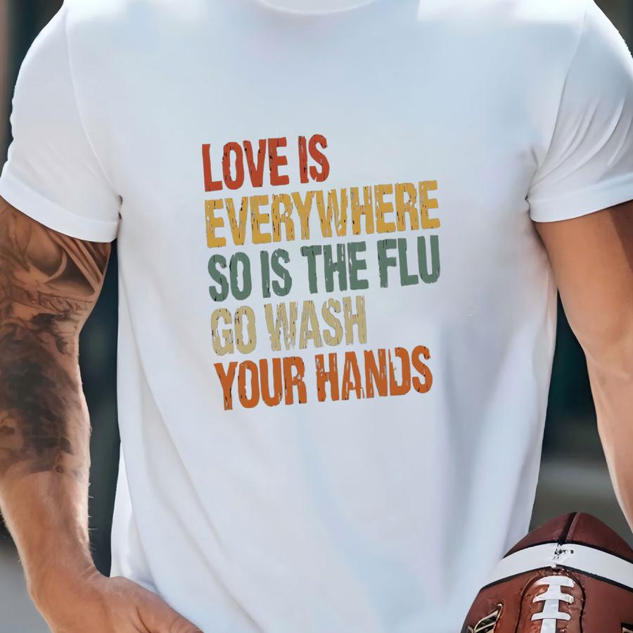 Love Is Everywhere So Is The Flu Wash Your Hands Sweatshirt, Funny Nurse Shirt, Nurse Mom, Valentine's Day Shirt, Gift For Girlfriends-vd018 T-shirt