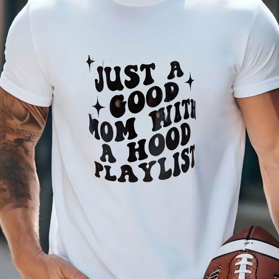 Just A Good Mom With A Hood Playlist Iced Coffee Cup, Glass Can Cup, Customized Mom Tumbler, New Mom Gift, Gift Idea, Water Glass T-shirt
