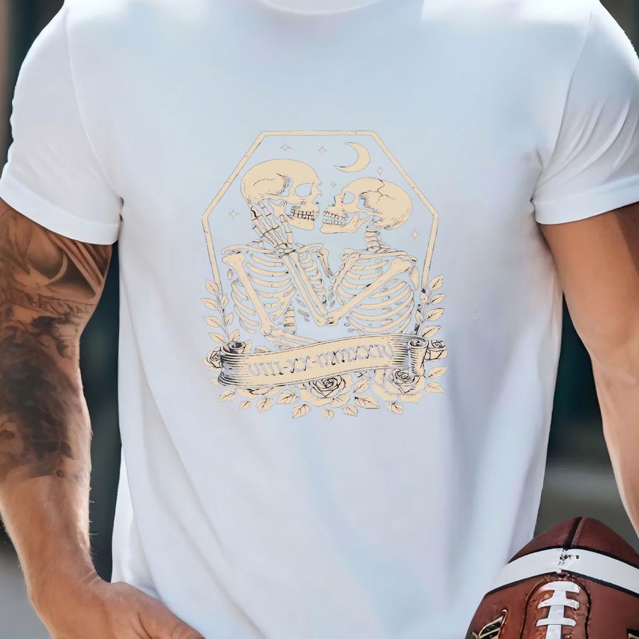 Gothic Bride And Groom Matching Shirts, Newlywed Couples Custom Name Tees, Married Honeymoon Husband Wife Hoodie T-shirt