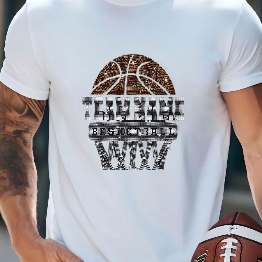 Personalized Rhinestone Basketball Team Shirt: Custom Bling Sports Tee T-shirt