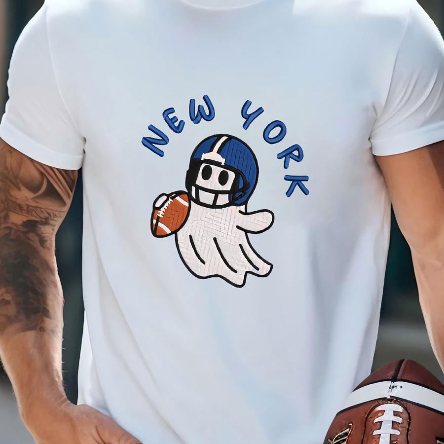 New York Ghost Football Quarter Zip Sweatshirt: Cozy Game Day, Halloween Pullover T-shirt