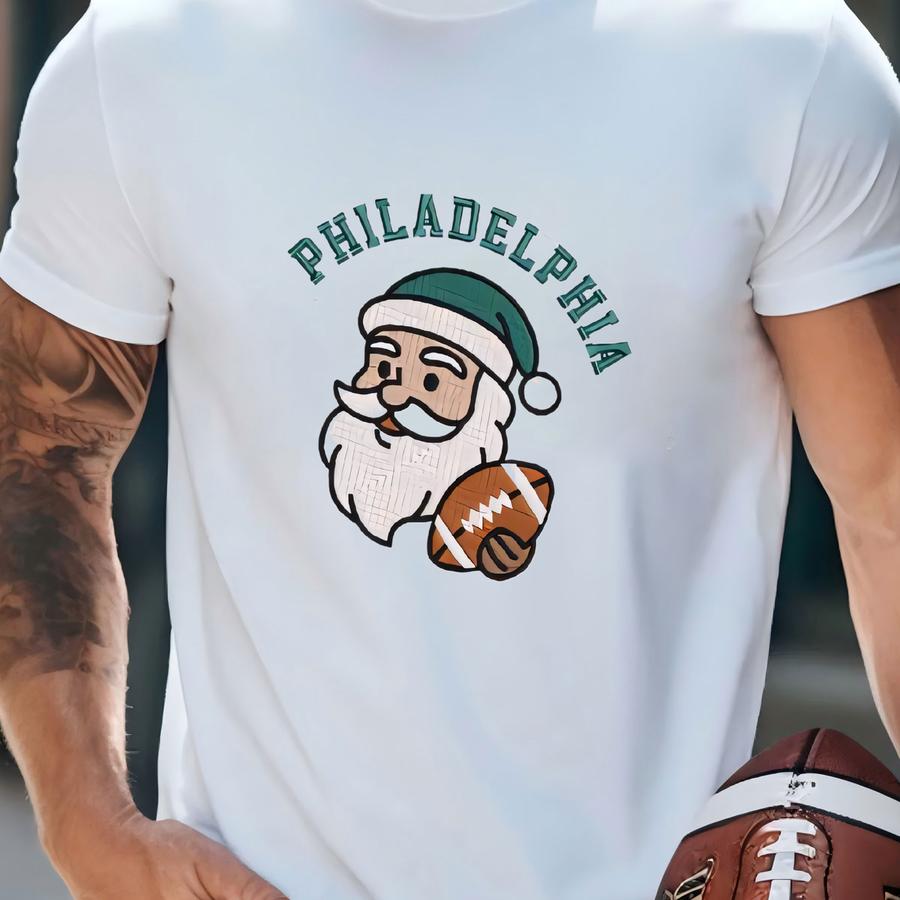 Philadelphia Quarter Zip Sweatshirt: Santa Football Pullover, Holiday Game Day Unisex Cotton Blend T-shirt