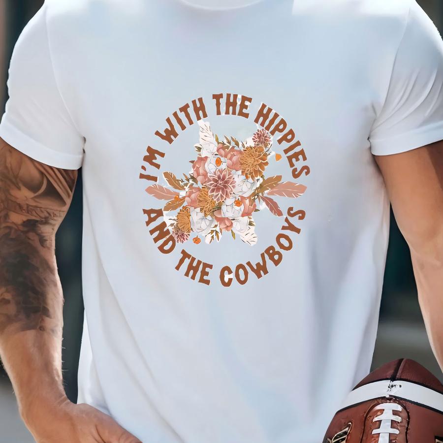 I'm With The Hippies The Cowboys Tee, Polyester Canvas Tee, Western Boho Tee, Western Tee, Western Floral T-shirt