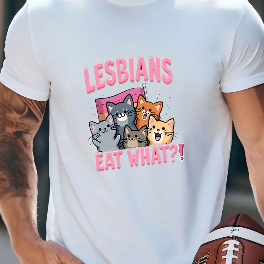 Lesbians Eat What?! Funny Cat Gay Pride Lgbtq Pun, Pride Month Humor, Lgbtq+ Cat Shirt, Funny Lesbian, Rainbow Cat Pride Tee, Queer Humor T-shirt