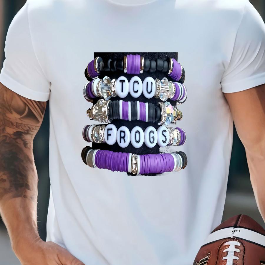 Full Stack Tcu Inspired Heishi Friendship Stacking Bracelets Horned Frogs Gameday Jewelry T-shirt