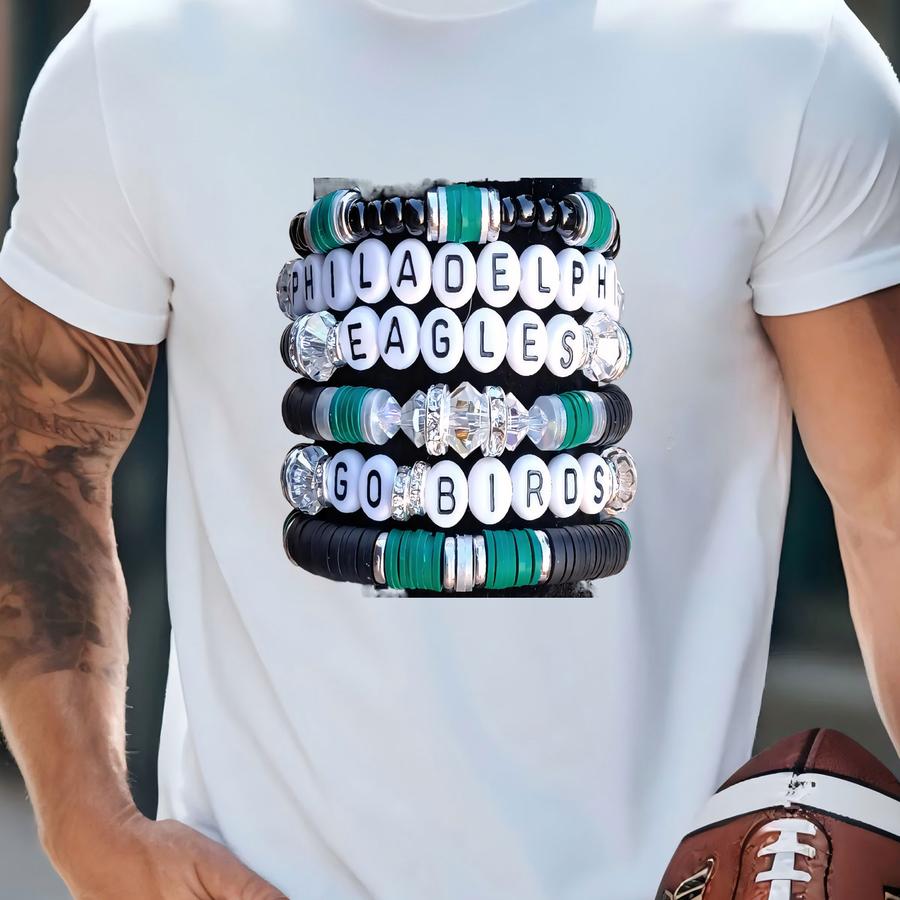 Entire Stack Heishi Stacking Friendship Inspired Bracelets Gameday Team Gift Jewelry T-shirt