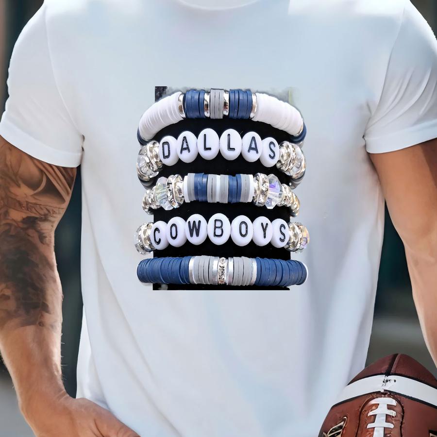 Full Stack Cowboys Heishi Bracelet Stack Rhinestone Game Day Jewelry Texas T-shirt