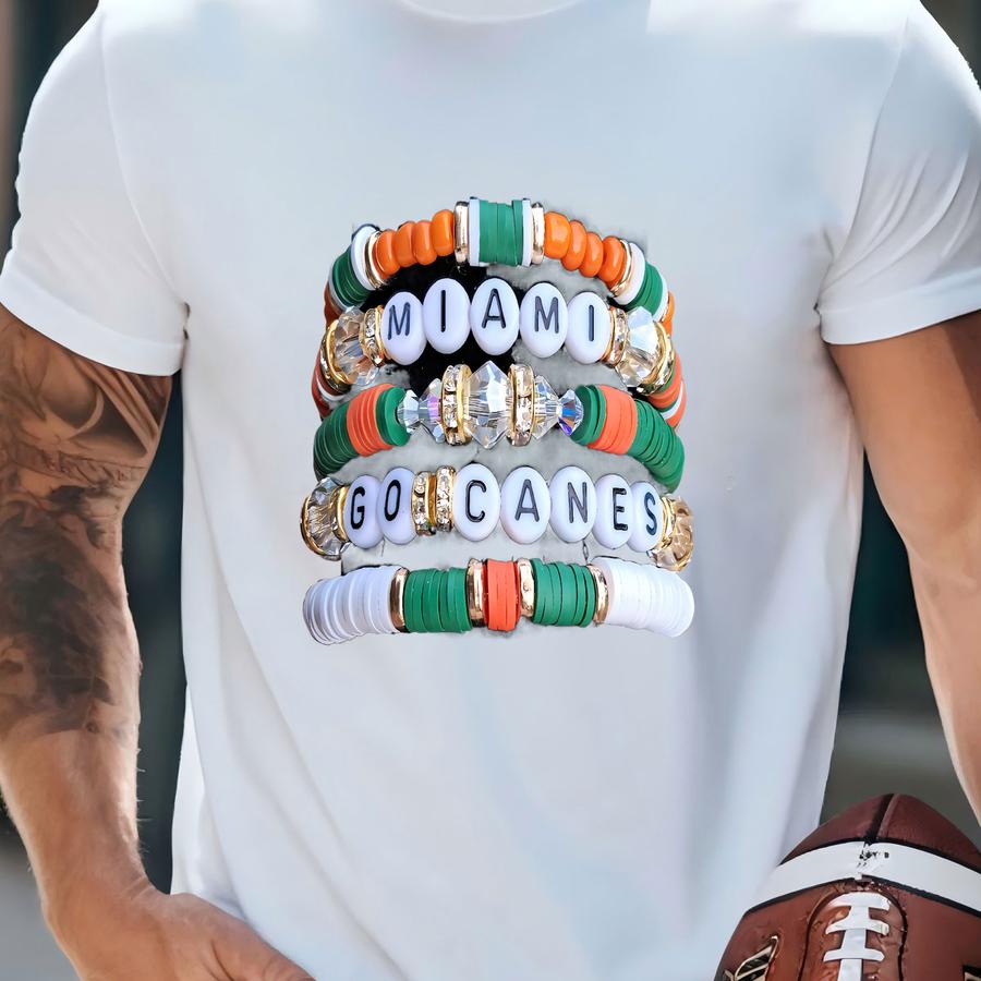 Entire Stack Miami Hurricanes Inspired Heishi Stacking Bracelets T-shirt
