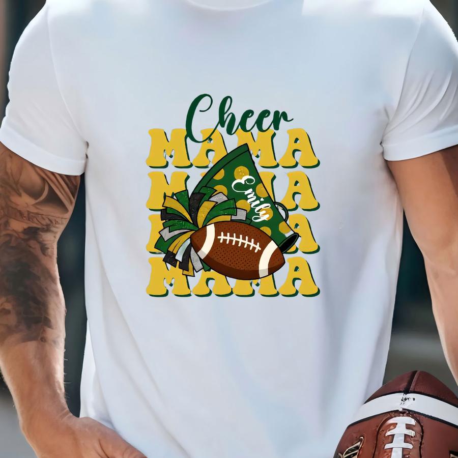 Personalized Cheer Mom Shirt Design Custom Football Season Tee Personalized Top Game Day Apparel Gift For Cheer Mom Spirit Wear Team Colors T-shirt