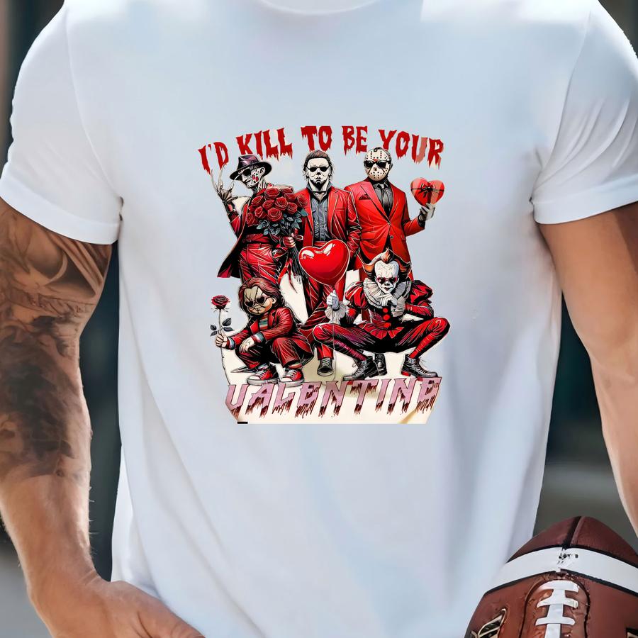 I'd Kill To Be Your Valentine Shirt, Horror Valentine Shirt, Valentine Horror Friends Shirt, Valentine Gift Shirt, Unisex Shirt Bx11 T-shirt