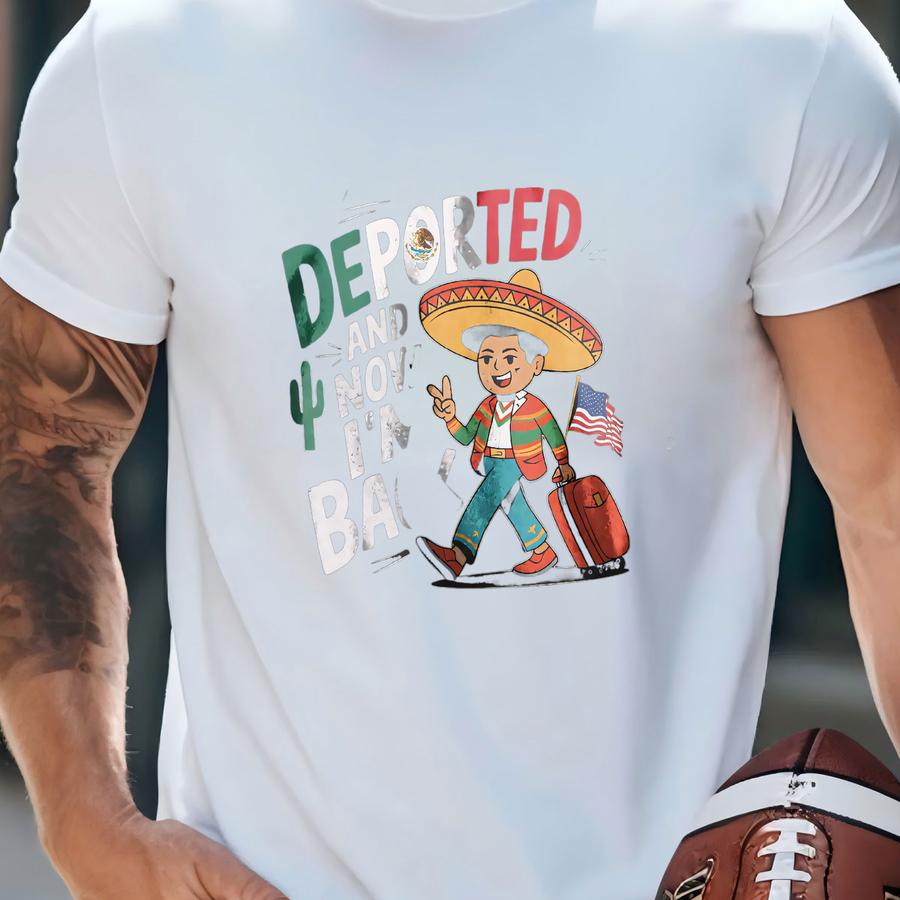 Deported And Now I'm Back Quote Mexican Shirt, Funny Immigration Shirt, Hilarious Political Tee, Sarcastic Statement Shirt, Bold Humor Bx51 T-shirt
