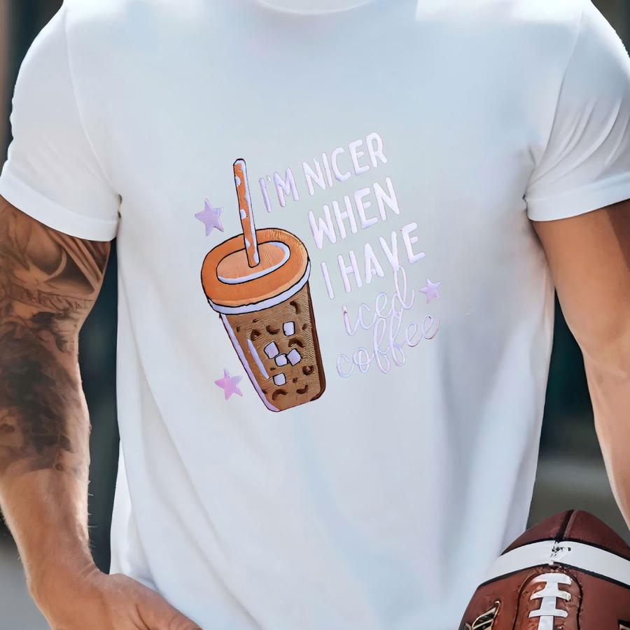 I'm Nicer When I Have Iced Coffee -- Crewneck, Coffee Sweatshirt, Cozy Pullover T-shirt