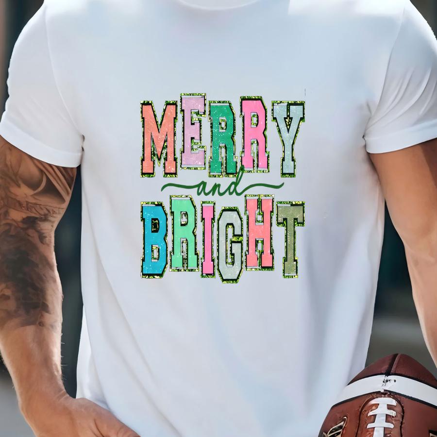 Merry And Bright Glitter Sweatshirt/hoodie/hoodie/long Sve/-adult Or Youth-unisex Fit T-shirt