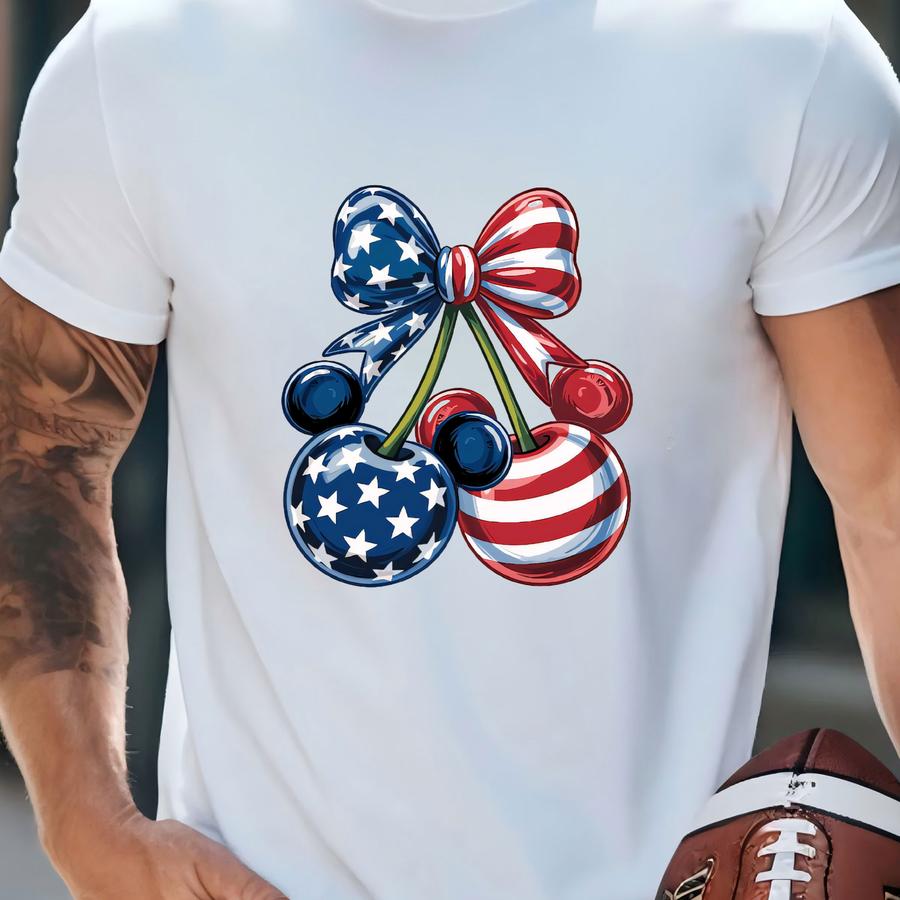 Patriotic Cherry Shirt, 4th Of July Shirt, American Flag Bow Tee, Usa Summer Vacation Shirt, Trip T-shirt