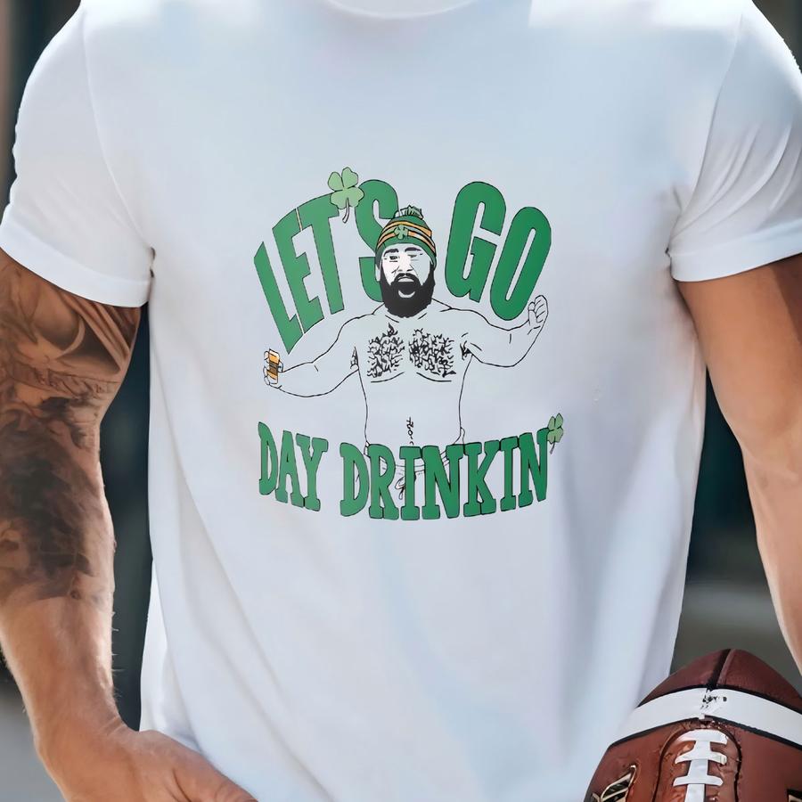 Let's Go Day Drinkin' - Jason Kelce Shirtless St Patricks Day Beer Mug - St Paddy's, St Pat's, Irish, Party, Mahomes, Kansas City, Football T-shirt