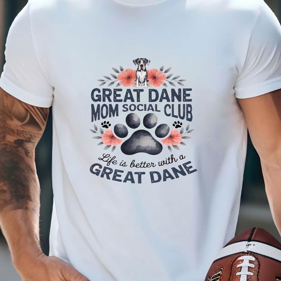 Great Dane Mom Social Club Hoodie, Sweatshirt, Dog Lover Gift, Floral Paw Print Design, Funny Dog Mom Shirt, Cute Dog Gift For Mom T-shirt