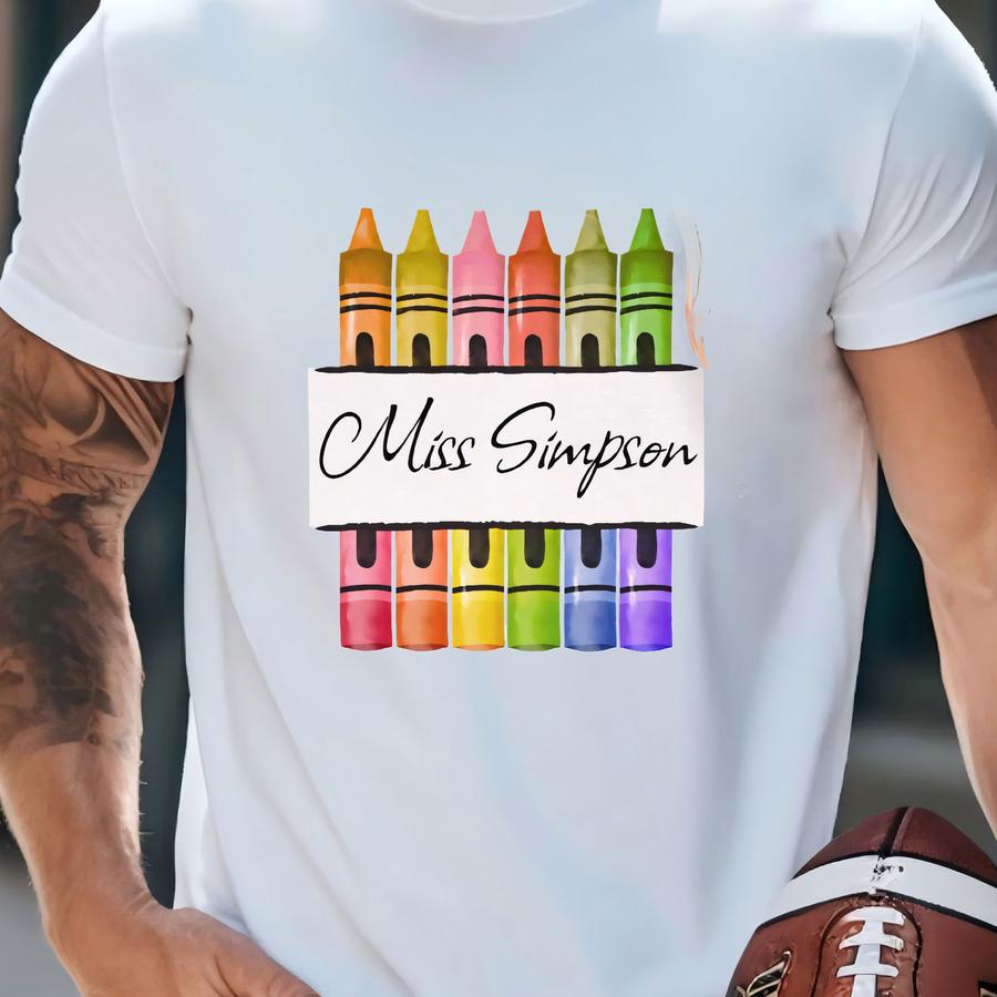 Personalized Teacher Hoodie: Colorful Crayon Design, Back To School T-shirt