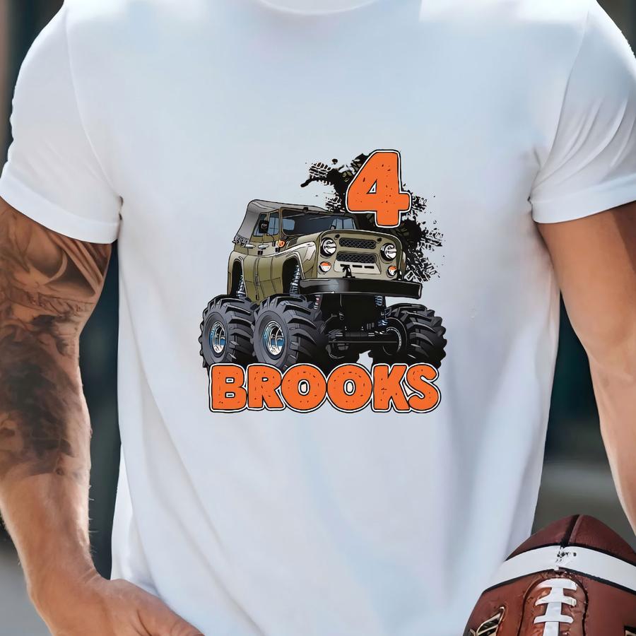 Monster Truck Birthday Shirt, Boys Personalized Birthday Shirt, Truck Tshirt, Custom Monster Truck Birthday Gift Tee, Fourth Birthday T-shirt
