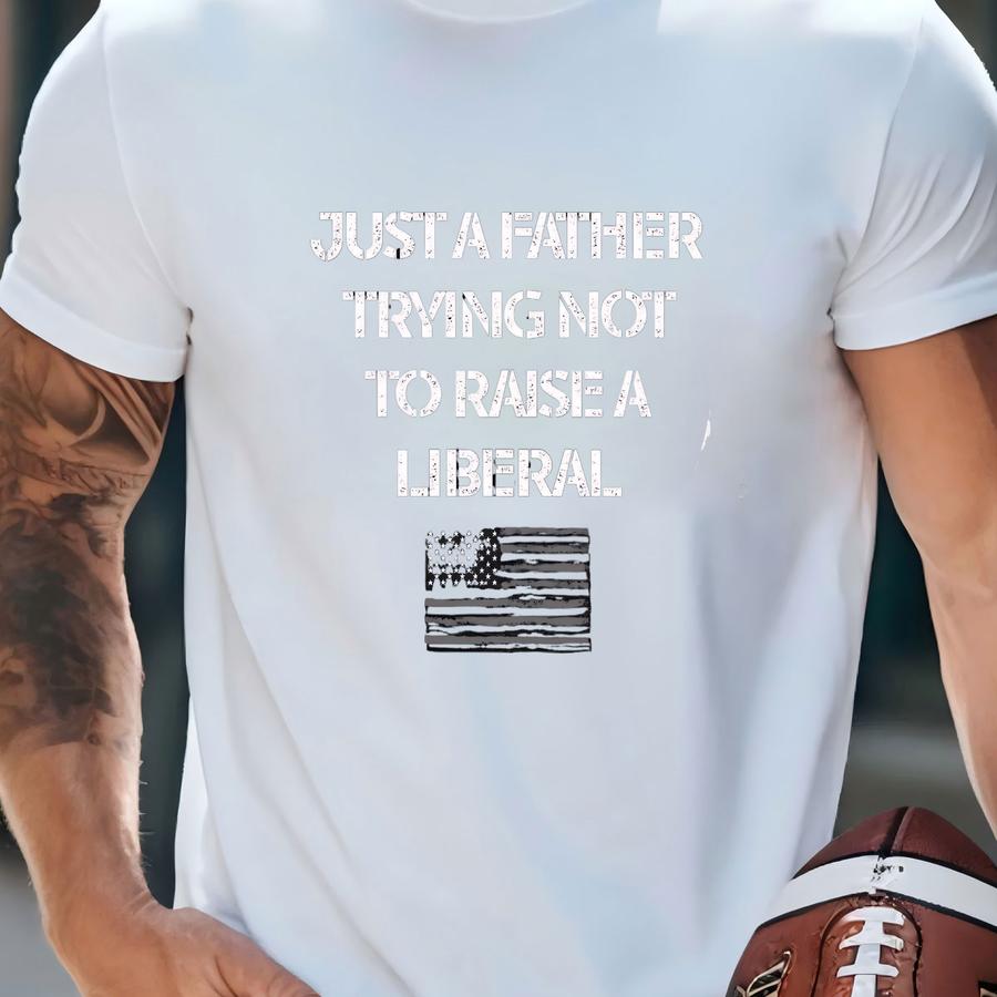 Just A Father Trying Not To Raise A Liberal Shirt, Political Republican Usa Tshirt, Fathers Day Funny Shirt, Proud Vet American Dad Hoodie T-shirt