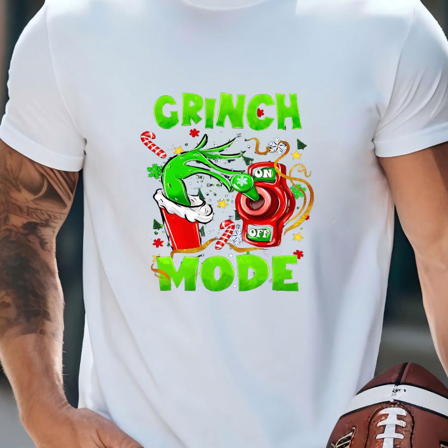 Funny Christmas Mood Sweatshirt, Cozy Hoodie With Green Hand And On Off Switch Print T-shirt