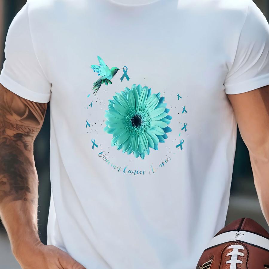 Ovarian Cancer Awareness Sweatshirt: Teal Ribbon, Hummingbird, Survivor Support T-shirt